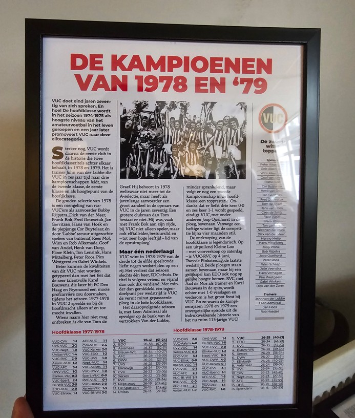 Op zaterdag 29 November was het zo ver!! De reünie van de “GOUDEN” VUC-selectie, die in de jaren 70 eerst promoveerde naar de zondag Hoofdklasse KNVB (toentertijd de allerhoogste amateur-afdeling) en daarna tweemaal achter elkaar kampioen werd in de Hoofdklasse A. Tot zover waren de achterhalen waren alle spelers van deze selectie’s (team 1 en 2) uitgenodigd om aanwezig te zijn bij de wedstrijd van het