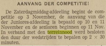 Toen in november 1945 de competitie werd hervat konden o.a. de velden aan de Hoekwatersloot te Voorburg nog niet worden betreden, zodat de clubs die daar voor de oorlog gehuisvest waren voorlopig bij andere verenigingen ondergebracht moesten worden.