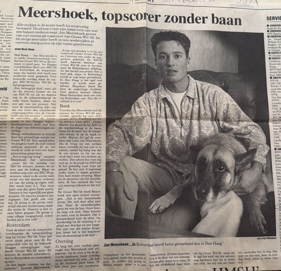 Hij was ooit een geweldig talent, scoorde er altijd en overal lustig op los maar door het flinke aantal blessures stagneerde helaas zijn droom om op het hoogste amateurniveau uit te komen. Toch maakte Jan Meershoek (op de foto rechts in de jeugd van Hsv ADO scorend) in de jaren negentig naam in onze Haagse voetbalwereld. Vandaag zetten wij Jan Meershoek weer eens volop in the spotlights en blikken samen met hem terug naar die mooie tijden van weleer. Veel lees en kijkplezier met de 15 vragen aan Jan Meershoek. (Alle foto’s hier geplaatst komen uit het privéarchief van Jan Meershoek)