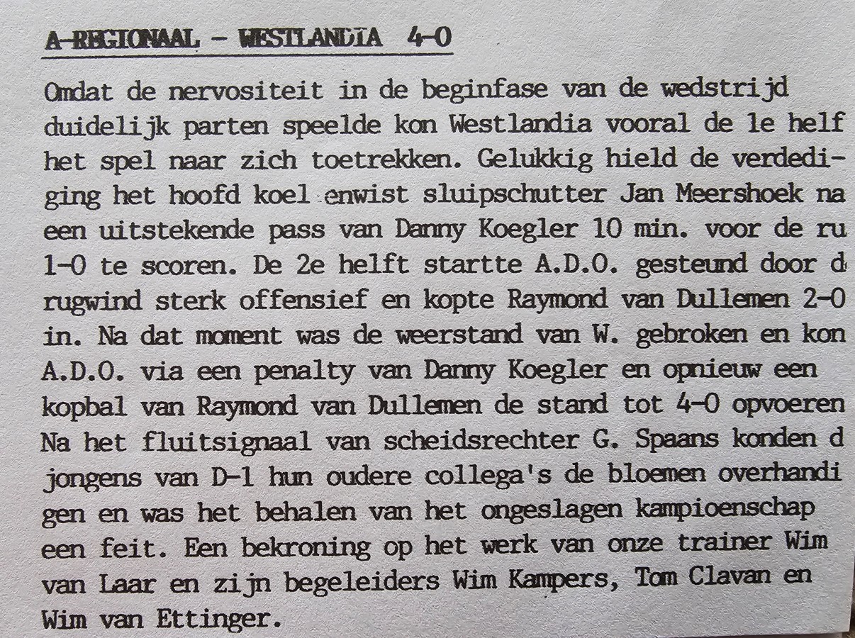 Ja de voetbal periode was eigenlijk wel de mooiste tijd uit mijn leven, helaas wel vrij vroeg uitgeschakeld voor competitie voetbal vanwege mijn knieën maar heb nog jaren gelukkig veteranenvoetbal kunnen spelen bij de LVV de Postduiven. Dat was ook erg gezellig.