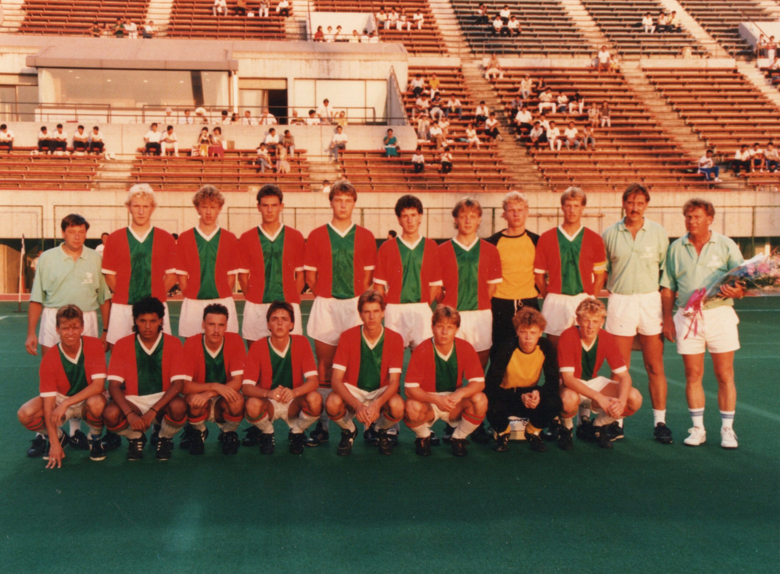 In het kader van de Japans-Nederlandse betrekkingen had de Japanse voetbalbond aan de KNVB gevraagd om met een A-juniorenteam naar Japan te komen. De KNVB kon echter, om organisatorische redenen geen team samenstellen. Omdat de Hsv ADO met zijn jeugd stond aangeschreven als een van de beste opleidingen van Nederland werden vervolgens ADO’s bestuurslid Rob van Dullemen en A-trainer Wim van Laar door de ambassadeur uitgenodigd op de Japanse ambassade om mogelijk deel te gaan nemen aan een toernooi in Azië. Van het een kwam het ander en zodoende vertrok ADO met haar hoogste jeugdteam, van 16 t/m 31 augustus 1989, voor 15 dagen naar Japan. Jan Meershoek zien we hier op de voorste rij geheel links.