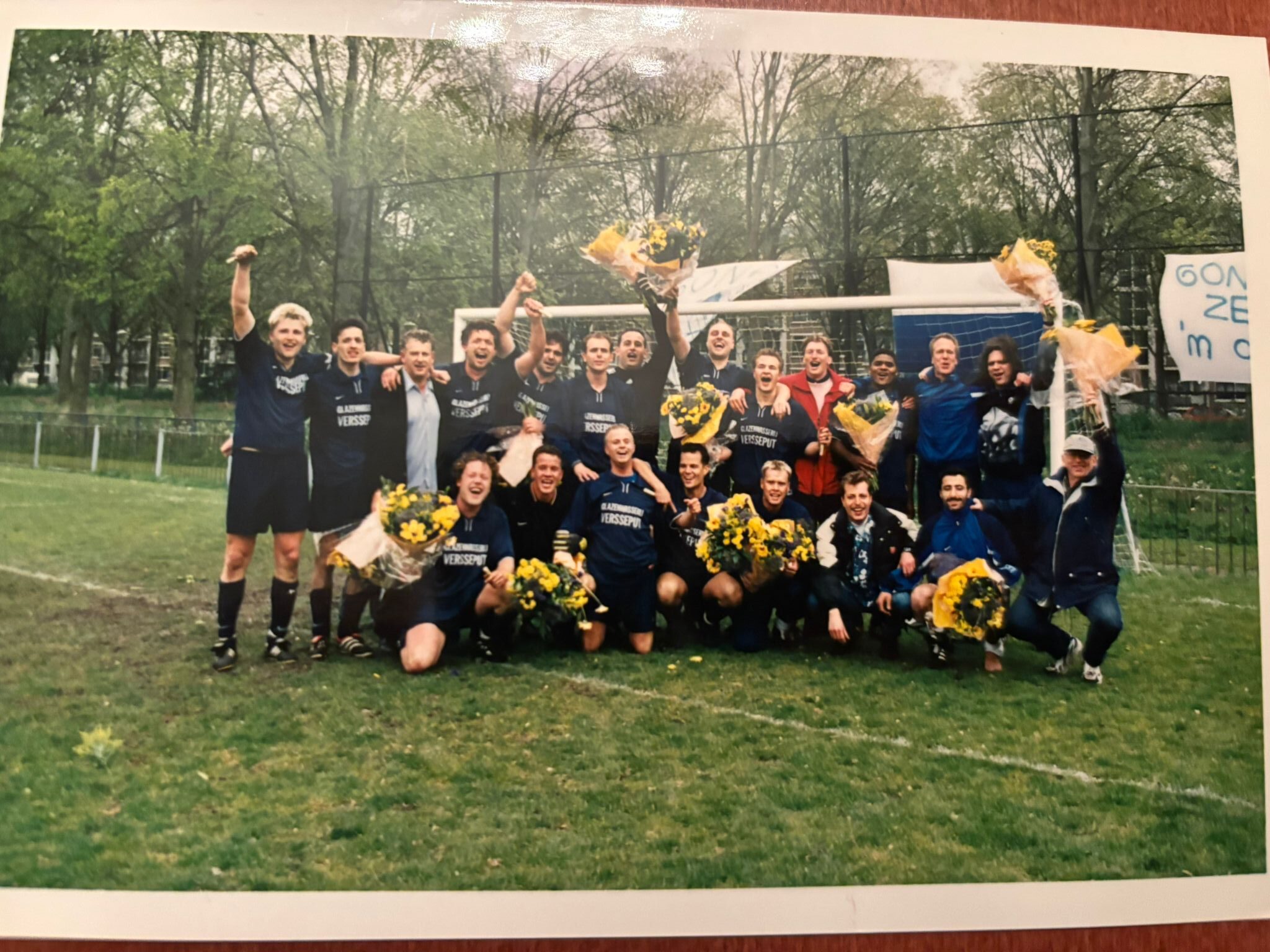 De feestelijke foto van GONA dat, o.l.v. trainer Henk Baggerman, op 28 april 2002 Haagse voetbalgeschiedenis schreef.
