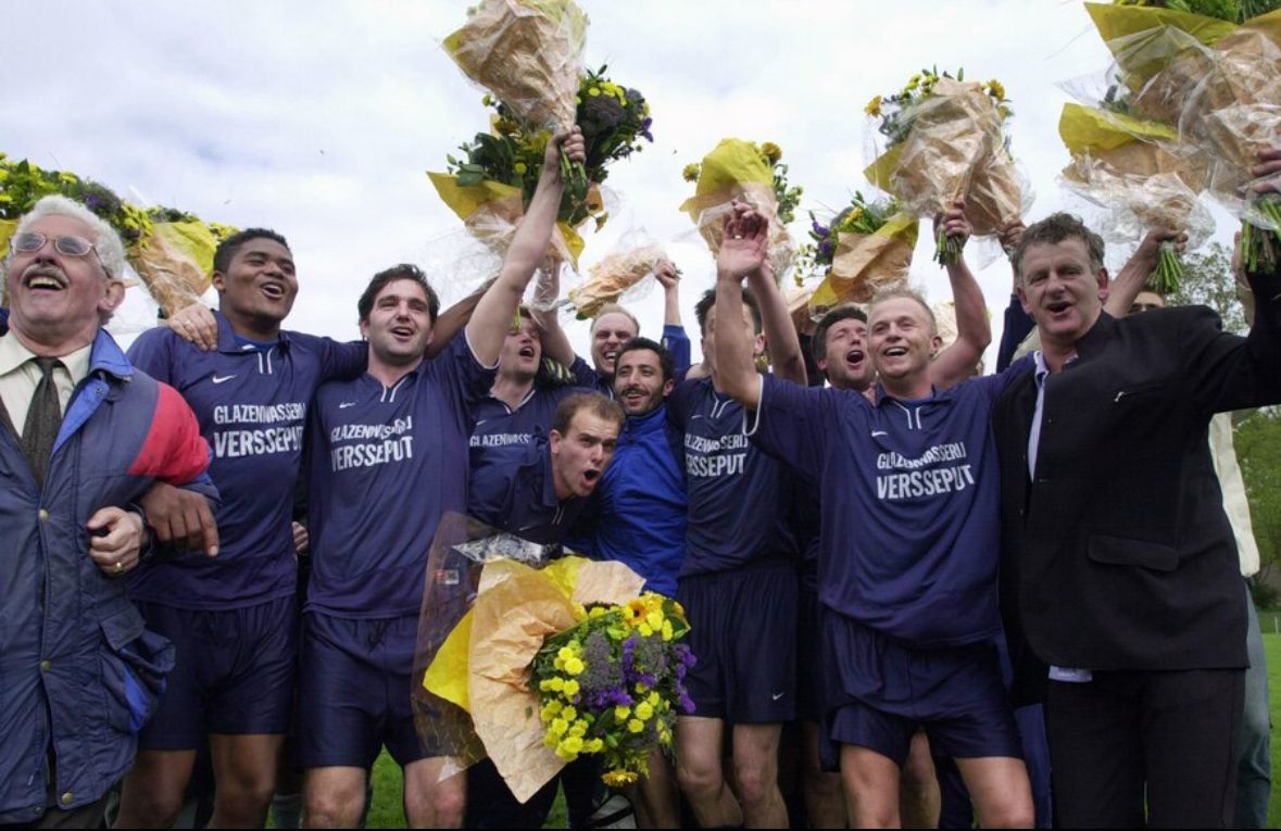 De feestelijke foto van GONA dat, o.l.v. trainer Henk Baggerman, op 28 april 2002 Haagse voetbalgeschiedenis schreef.