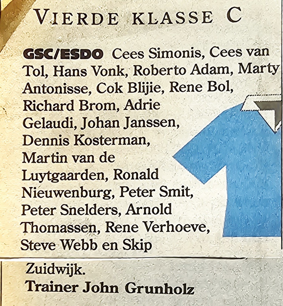 Maar ook John Grunholz, hij was een voetbaldier in hart en nieren en ook met hem ben ik bij GSC ESDO kampioen geworden.