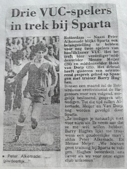Uit de glorietijden (eind jaren zeventig) van Hsv VUC, in de uitwedstrijd tegen DHC. Namens VUC (in het prachtige “Juventus tenue”) zien we op de foto aanvoerder Bob Rijpstra, Hans Mittelberg en onze hoofdpersoon van deze week Menno Meijer. Met Menno gaan we deze week weer heerlijk terug naar de jaren zeventig/ tachtig van het Haagse amateurvoetbal. Veel lees- en kijkplezier weer.