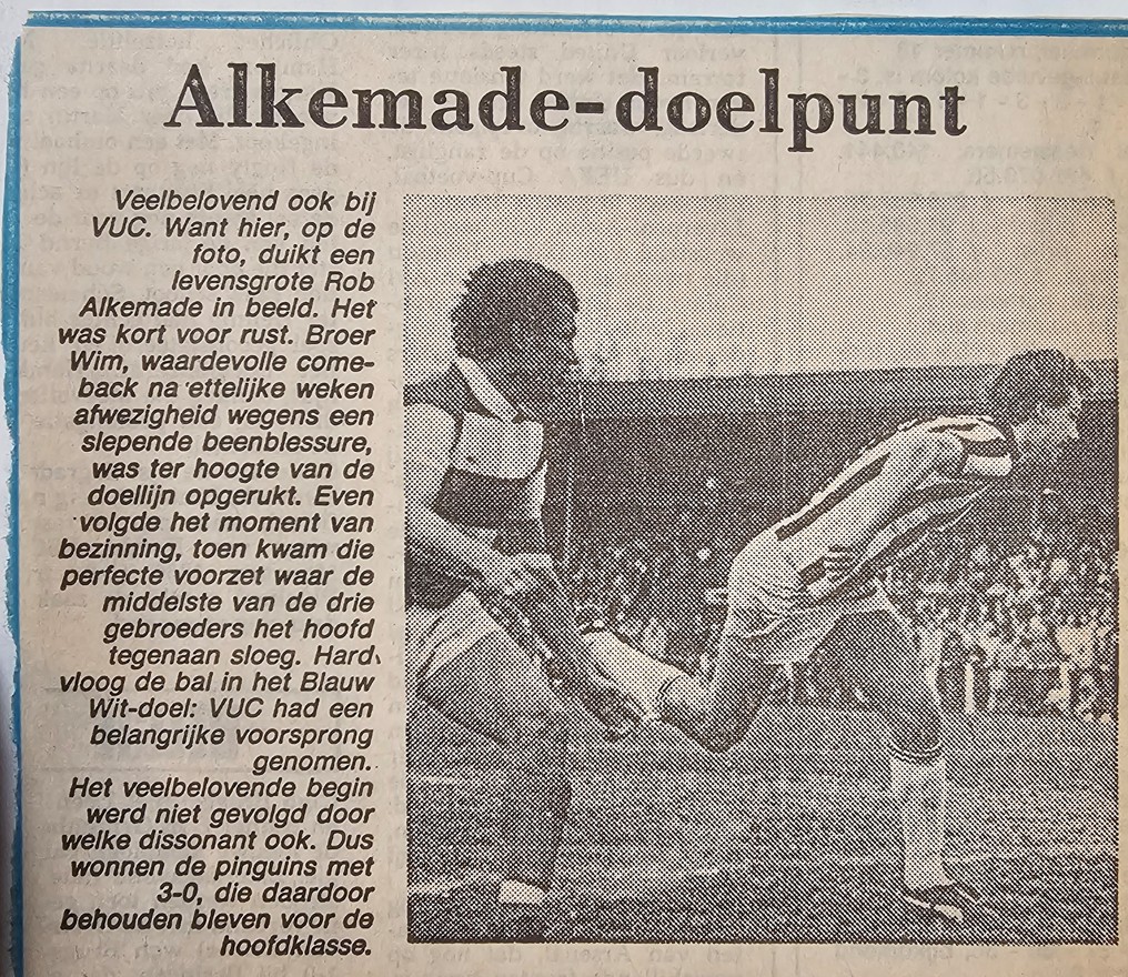 Deze week gaan weer terug naar de jaren zeventig van het Haagse voetbal. De gouden periode van de Hsv VUC in de top van het Nederlandse (zondag) amateurvoetbal! Een periode ook waarin er maar liefst drie broers (Wim, Rob en Peter Alkemade) furore maakte in het vlaggenschip van VUC. Op de reünie van Hsv VUC op zaterdag 29 november j.l. ontmoette wij Rob Alkemade en zetten hem deze week weer eens in the spotlights. Heel veel lees- en kijkplezier Haagse voetbalhistorieliefhebbers….