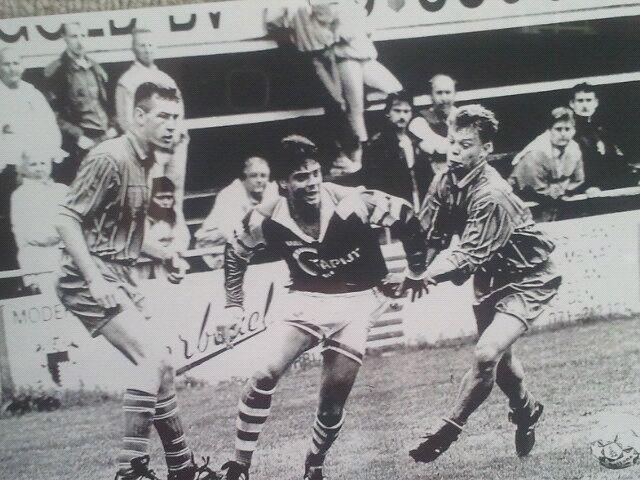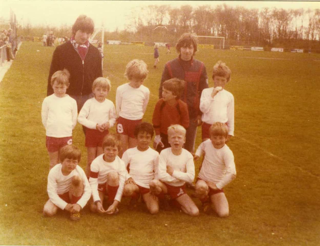 Roland als aanvoerder in de jeugd bij VCS met links boven trainer John van Zweden