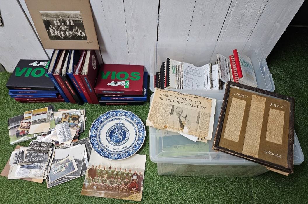 Vorige week kregen we via de mail van Wim van Laar het bericht of we nog interesse hadden in een heel groot v.v. V.I.O.S. archief. En of we daarin interesse hadden! Al moest ik op de fiets naar Voorburg gaan, de historie van het ooit zo mooie V.I.O.S. wilde wij dolgraag hebben. Met Wim hadden we op dinsdagmiddag afgesproken. Nou gelukkig maar dat we alsnog met de auto zijn gegaan want de kelderbox van Wim stond vol. Maar liefst vier grote dozen vol met (hele) oude foto’s, alle voetbalkrantjes per seizoen gebundeld, zorgvuldig bijgehouden plakboeken en nog heel veel meer werden door de familie Van Laar aan ons overhandigd. Bedankt voor deze bijzondere gift maar ook voor het vertrouwen dat dit allemaal bij ons in goede handen is.
