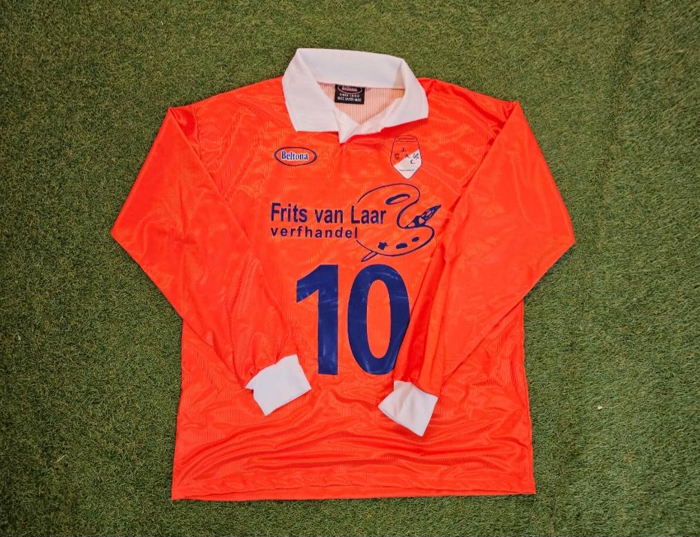 Ooit bij een interview had Mark van den Berg ons zijn oude v.v. JAC shirt beloofd. Heel eerlijk waren wij dit alweer vergeten maar Mark is een man van zijn woord en overhandigde afgelopen week zijn jubileumshirt aan ons. Van de v.v. JAC hadden wij nog helemaal geen voetbalshirt dus de verzameling voetbalshirts van niet meer bestaande voetbalverenigingen uit de Haagse regio is hiermee weer uitgebreid. Bedankt Mark.