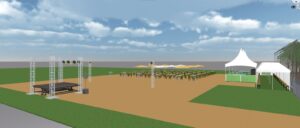 Veld 2 A Met banken staantafels en podium