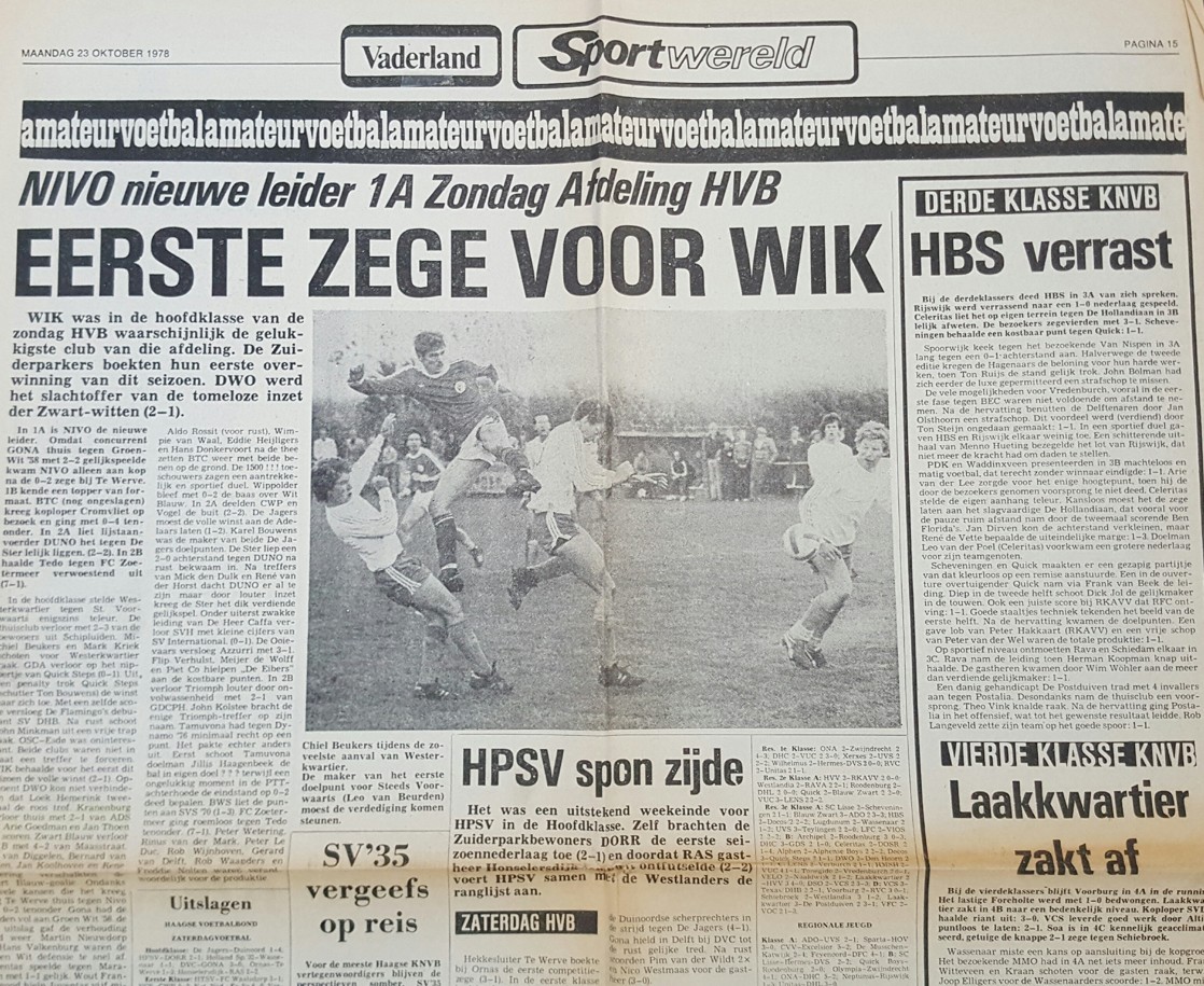 Het Vaderland kocht ik in de winkel en de Haagsche Courant liep ik zelf tot mijn 21e (student). Ik verslond de reportages en wedstrijdverslagen. De kranten stonden zeker driemaal per week vol met interviews, reportages en voorbeschouwingen, op maandag, woensdag en vrijdag en veelal op dinsdag en donderdag nog interviews met Haagse amateurvoetballers of trainers. Vele Haagse voetballers kende ik van naam, prachtig. Er was geen ander medium dan de krant. Geen Teletekst, geen twitter of X, geen website, geen app, geen computer, geen directe radioverslagen, alleen de krant! Geweldig !