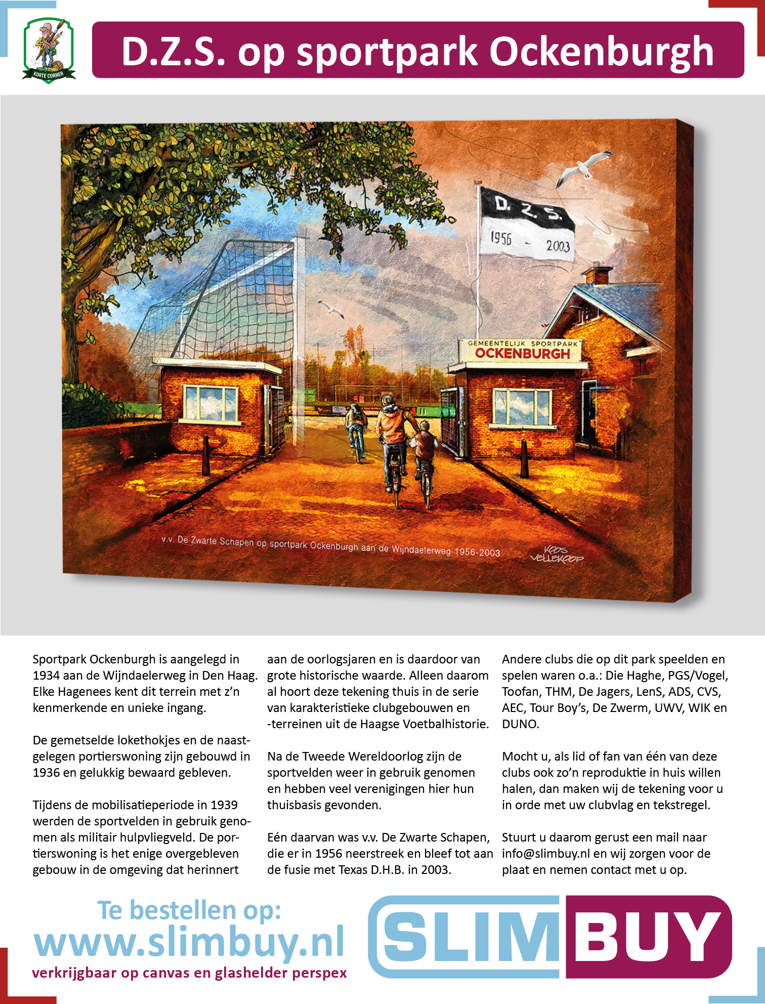 Omdat er op Ockenburgh veel meer clubs waren gehuisvest (en nu nog zitten) kan je met Koos bij bestelling afspreken van welke club jij de vlag en tekst op de tekening wil zien.