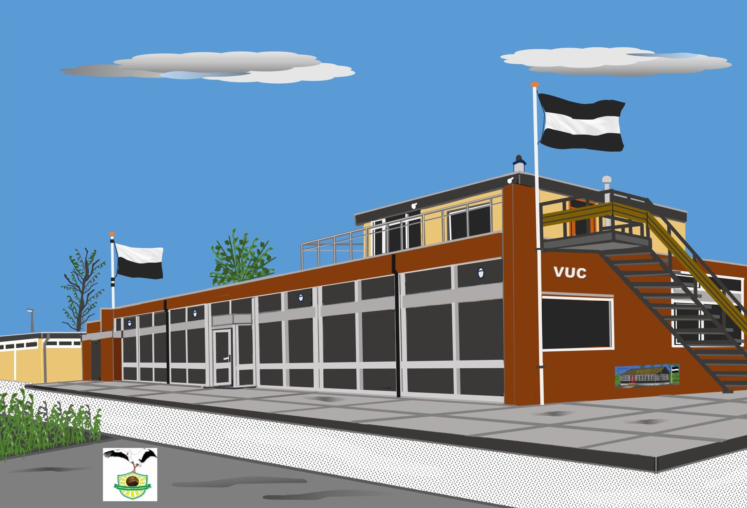 De illustratie van de nieuwe VUC kantine is zoals na de oplevering in 1969. Ter herinnering aan de oude kantine van VUC aan de Schenkkade is op de illustratie een afbeelding geprojecteerd van “De Wondertent” op de nieuwe VUC kantine. Veel VUC leden hebben intensief meegeholpen aan de bouw van de nieuwe kantine en tribune.