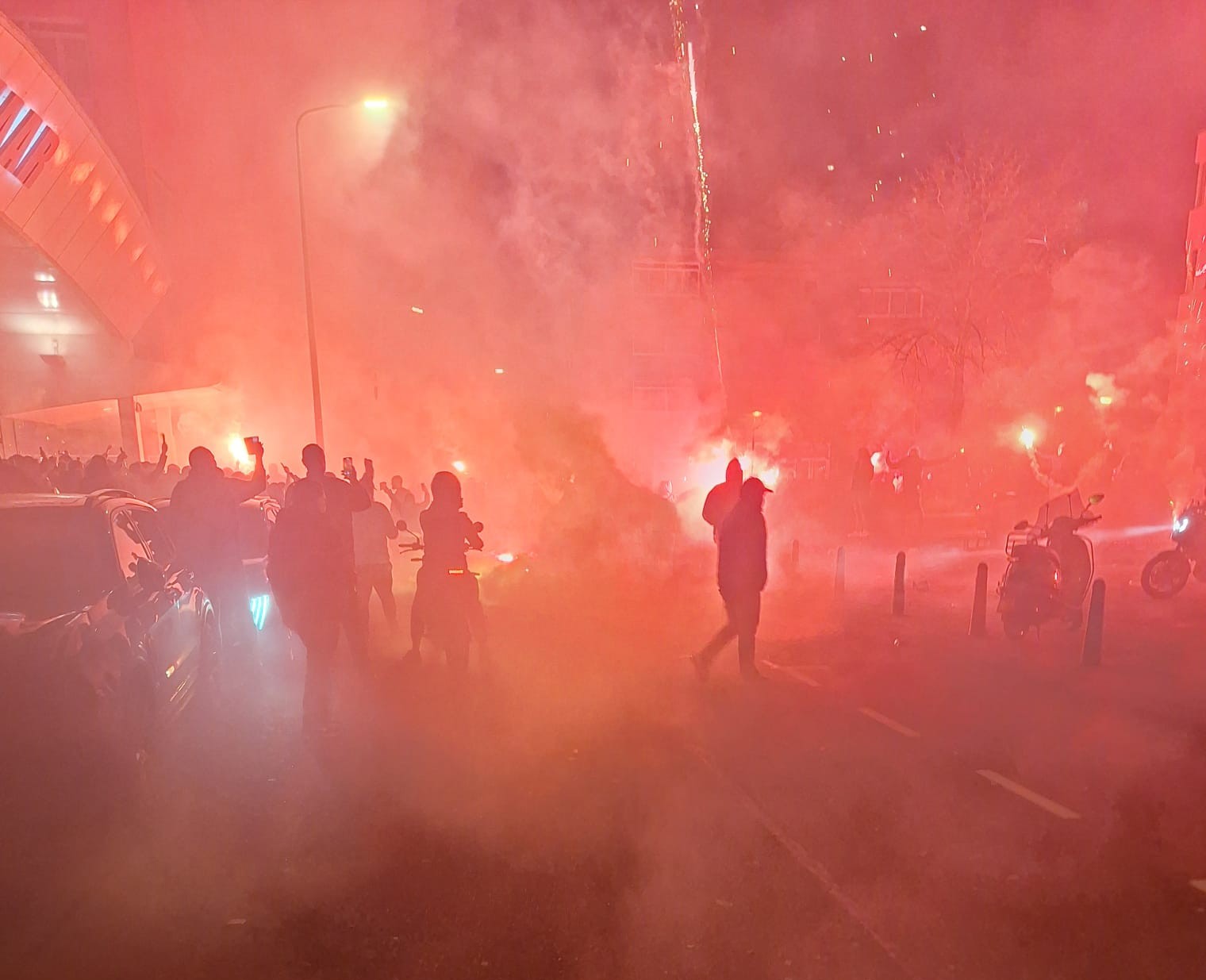 Vrijdagavond 10 april ongekende vreugde van feestende ADO Den Haag supporters in de Schilderswijk nadat FC Den Bosch – Cambuur 1-1 was geworden en ADO Den Haag daardoor officieel kampioen was (foto Brian van der Pol)